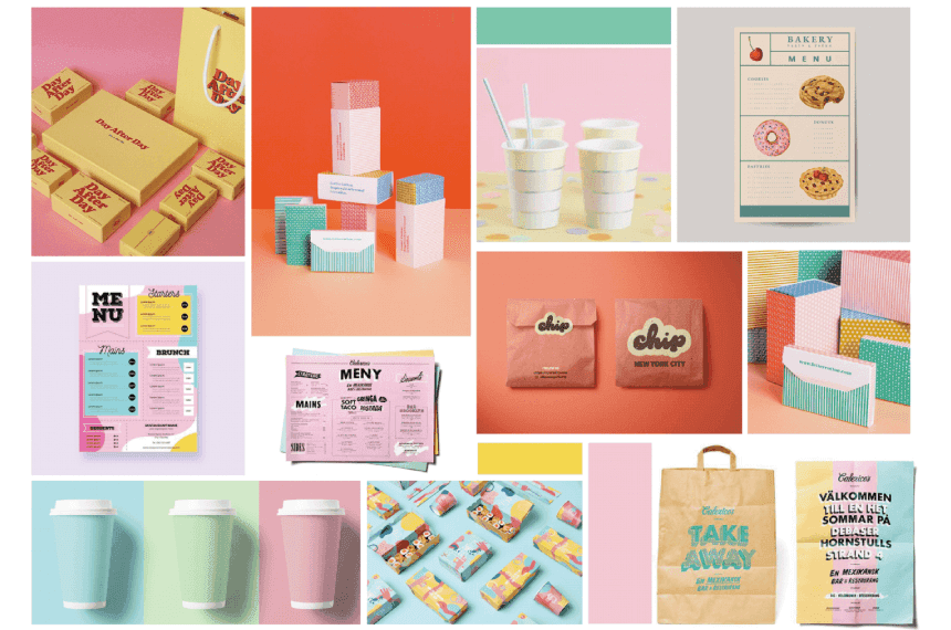 Here we have an example for a logo exploration where the creator has collected photos of cakes inspiring the colors and patterns for the logo.