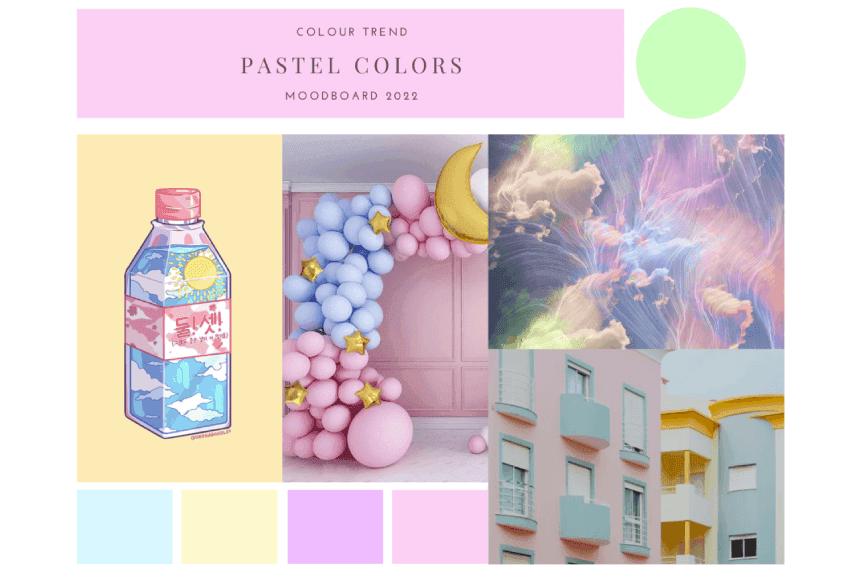 Creating the perfect pastel color scheme in a moodboard that is hard to look away from.