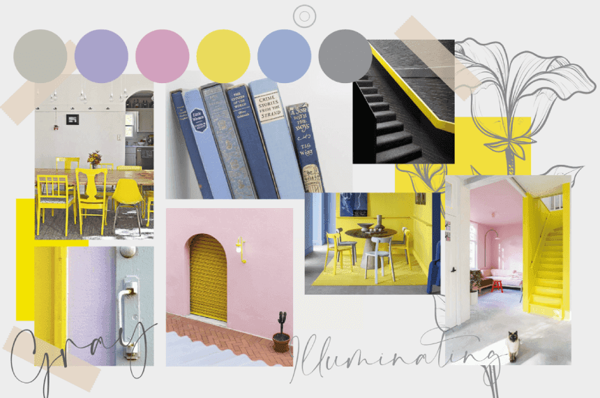 Personal kitchen interior design mood board with beautiful pastel colors and colorful spring vibes.